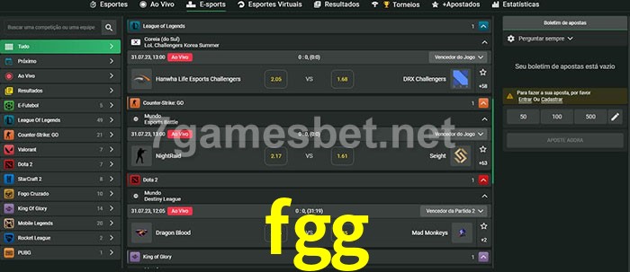 O fgg oferece uma grande seleção de opções de apostas em e-sports com probabilidades competitivas